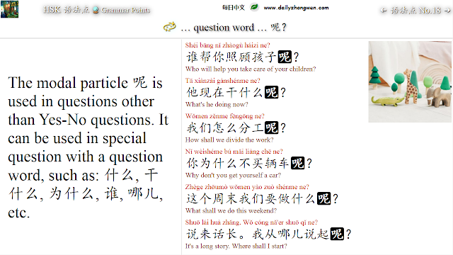 Today, let's learn HSK grammar points. Chinese grammar mainly relies on word order and function words. In this video, I am going to introduce 3 function words: 吗,呢,吧. They are modal particles used at the end of sentences to indicate mood or attitude. These 3 modal particles are always pronounced in neutral tone.